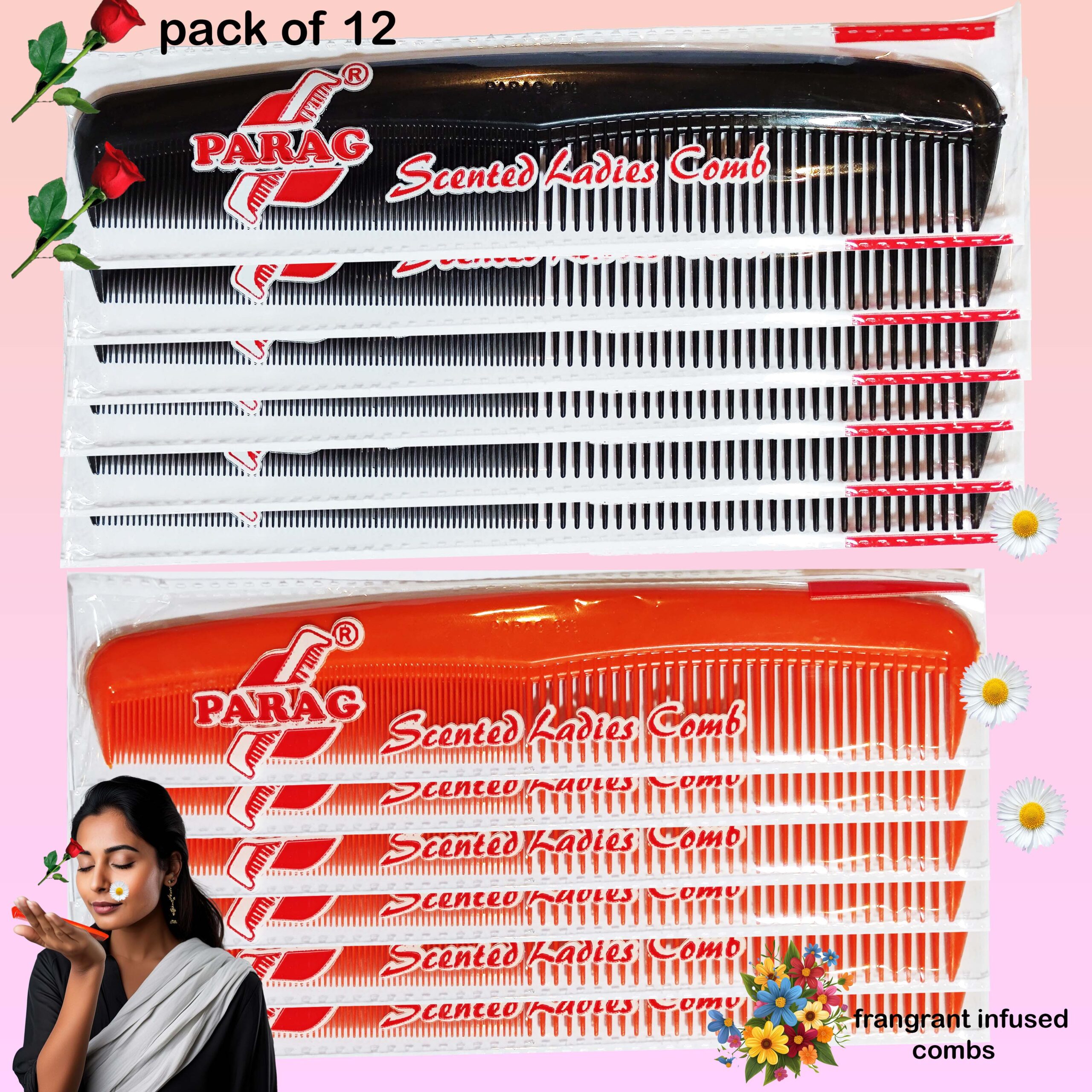 The Parag Scented Ladies Comb is uniquely crafted with fragrant-infused materials to leave a subtle, refreshing scent as you style. This pack of 12 features durable, dual-tooth combs that are individually wrapped for maximum hygiene and portability.